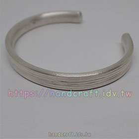 夏月韶光.999純銀手鐲 手工 C形橢圓, 條紋質感, 實心手鐲, 內圍弧面