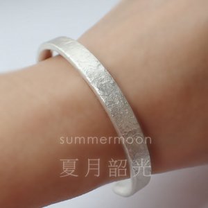夏月韶光.999純銀手鐲 手工鍛敲 C形橢圓, 岩石紋 質感, 實心手鐲, 內弧面
